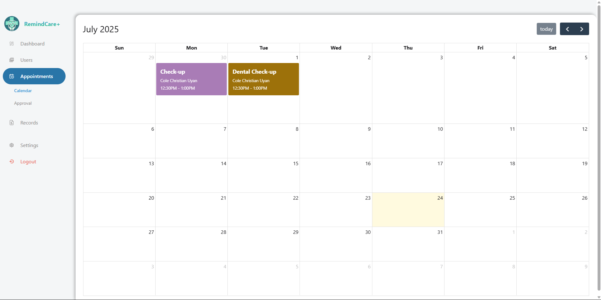 RemindCare+ Admin Dashboard